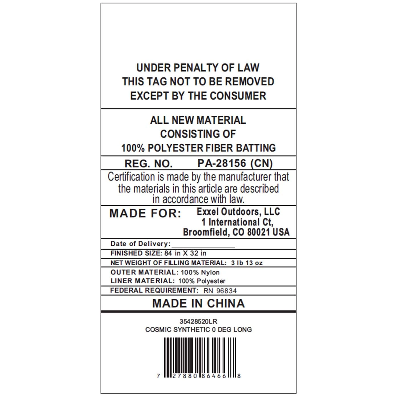 - ISO Temp Rating (Comfort): 18° / -8°C