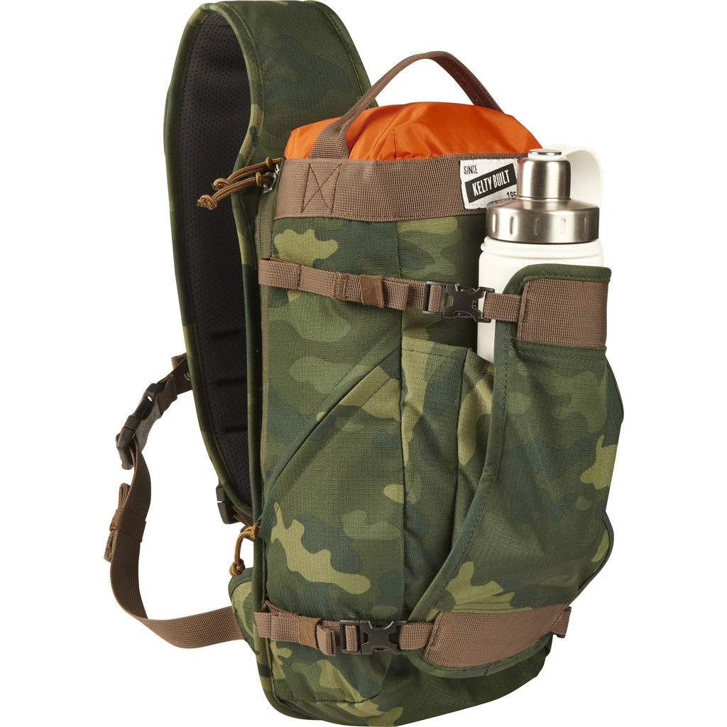 Sling it to left or swing it to the right – the Spur conforms to you! Outfitted with a three point harness that keeps it in place while you’re on the move, the Green Camo Spur Sling Bag is sleek, stylish and secure. Featuring a 9 liter volume, the Spur Sling Pack is the ideal size for a day’s worth of essentials. Spur-of-the-moment versatility has never been this comfortable thanks to Kelty’s air mesh EVA back panel and shoulder strap. An external shove it pocket and water pottle sleeve offer quick access on the go, while the U-shaped zipper opens up to a compact main compartment.Â